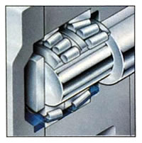 我们是一家在主机上采用的面对面滚锥轴承的公司。滚锥轴承以线接触方式承受推力载荷,这样大大地延长了主机使用寿命。主机上也装有一个轴承油槽,在主机停机时,可以储存冷却剂,这样能确保在重新启动时,轴承能得到充分润滑,从而延长轴承的寿命。