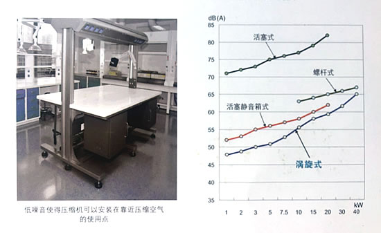 - 静音箱式外壳将噪音封闭在机组内部,从而可以将压缩机放在实验室,诊所等现场使用