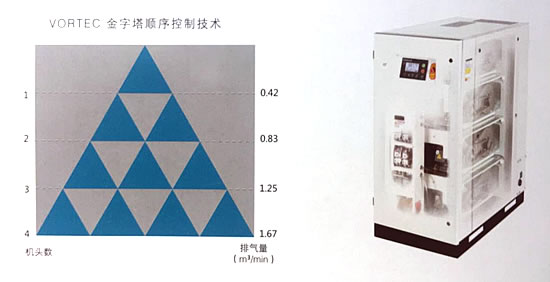 - VORTEC金字塔顺序控制技术,确保了非常低的消耗,同时实现整个无油系统优化运转