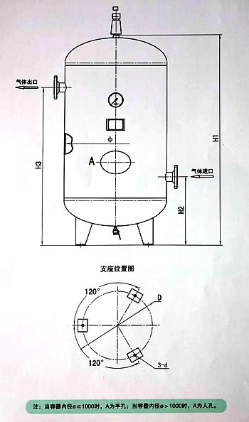 本表中1.0m3、1.5m3、2.0m3三种储气罐进出口为螺纹接头和法兰两种。